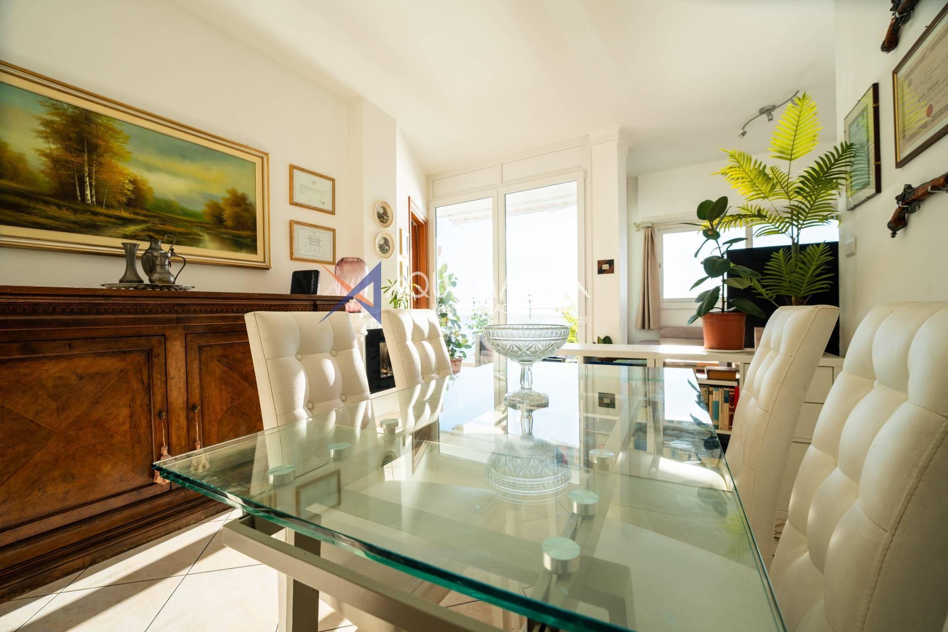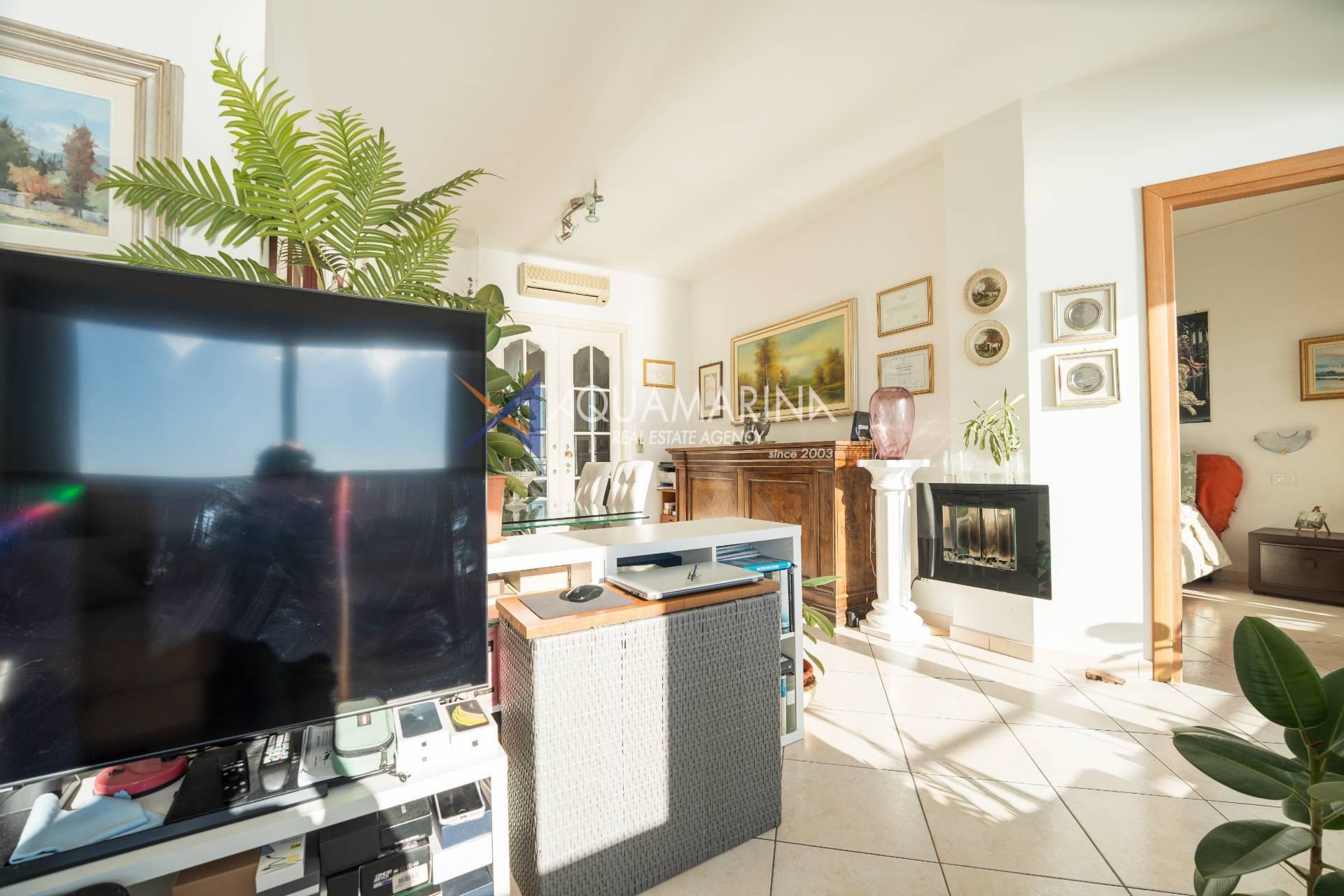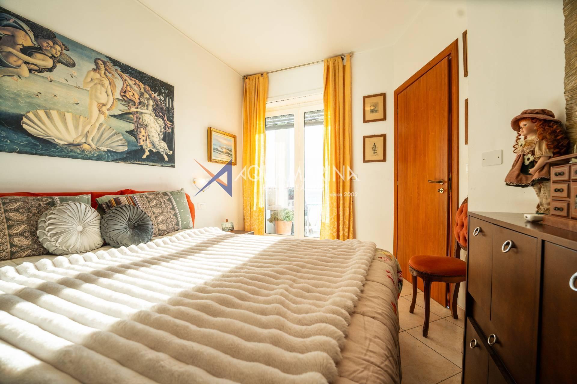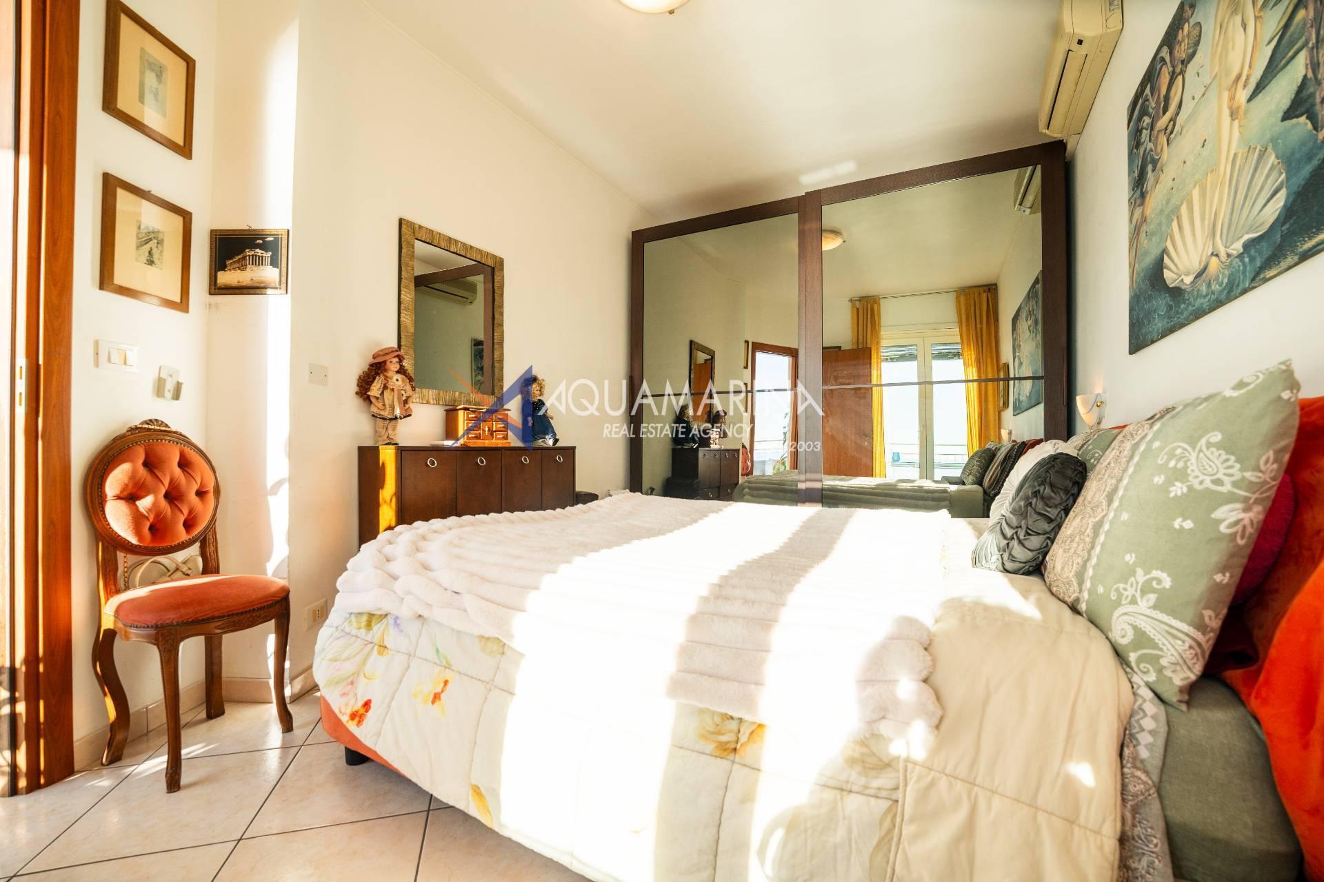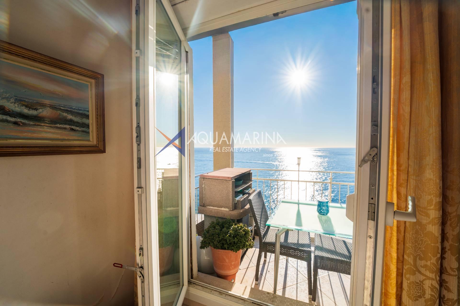 Sanremo, sea view apartment. We are selling a 5th-floor apartment with elevator, practically on the seafront with breathtaking views. It overlooks the sea with a 180° view of Capo Nero, one of the most picturesque spots on the Riviera di Ponente. Thanks to its location and large windows, the apartment is flooded with natural light, while the large terrace allows you to enjoy a priceless view while simultaneously relaxing in total tranquility, practically in the middle of the sea. The property comprises an entrance hallway, an open-plan kitchen with pantry and sea-view window, a double living room with a window overlooking the sea and access to the terrace, two bedrooms with views and access to the terrace, a bathroom with window, a second half-bathroom, a large terrace, a balcony, and a cellar. Heating is independent with a suspended fireplace and a heat pump that heats and cools the apartment. The exterior windows are made of PVC with double glazing.