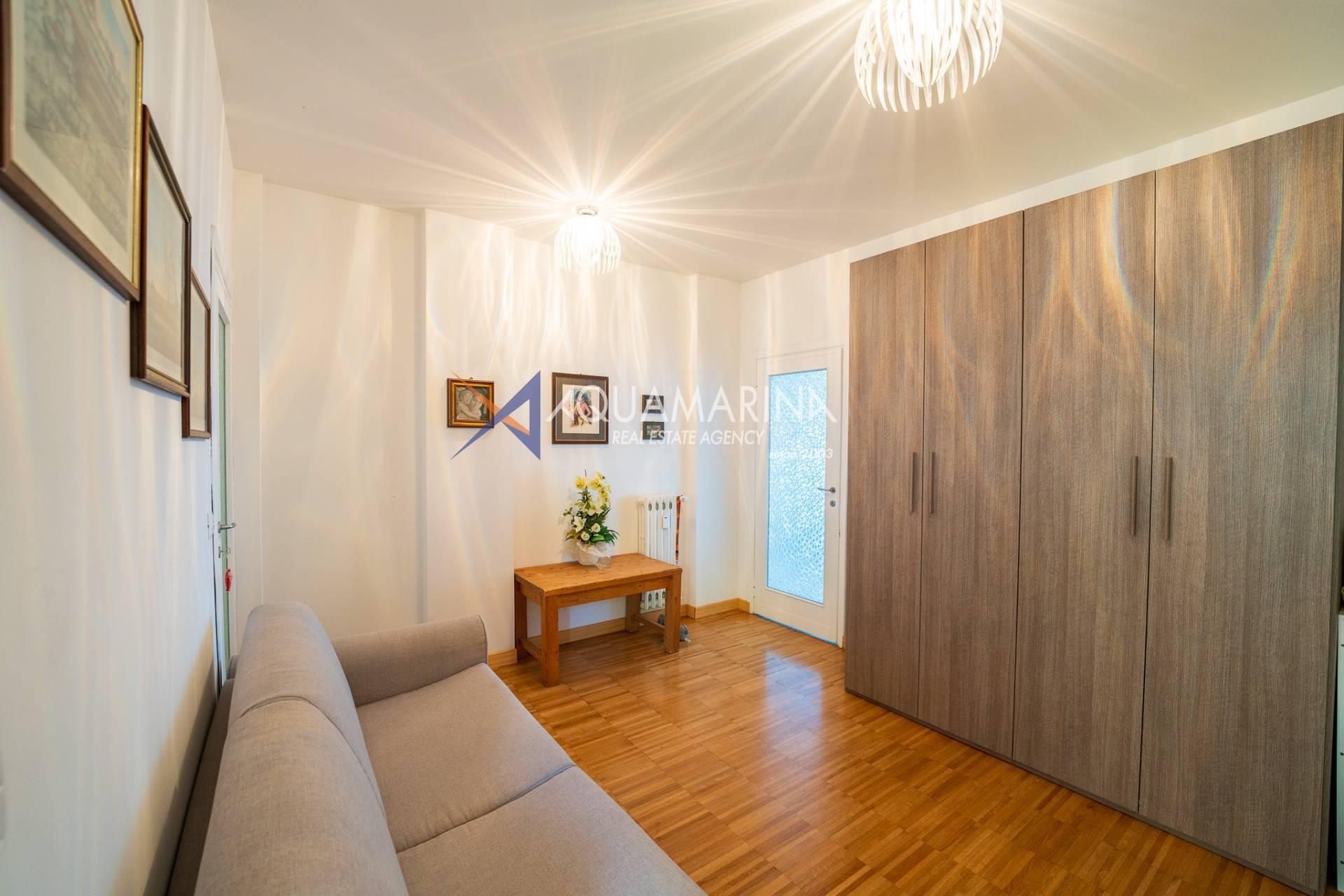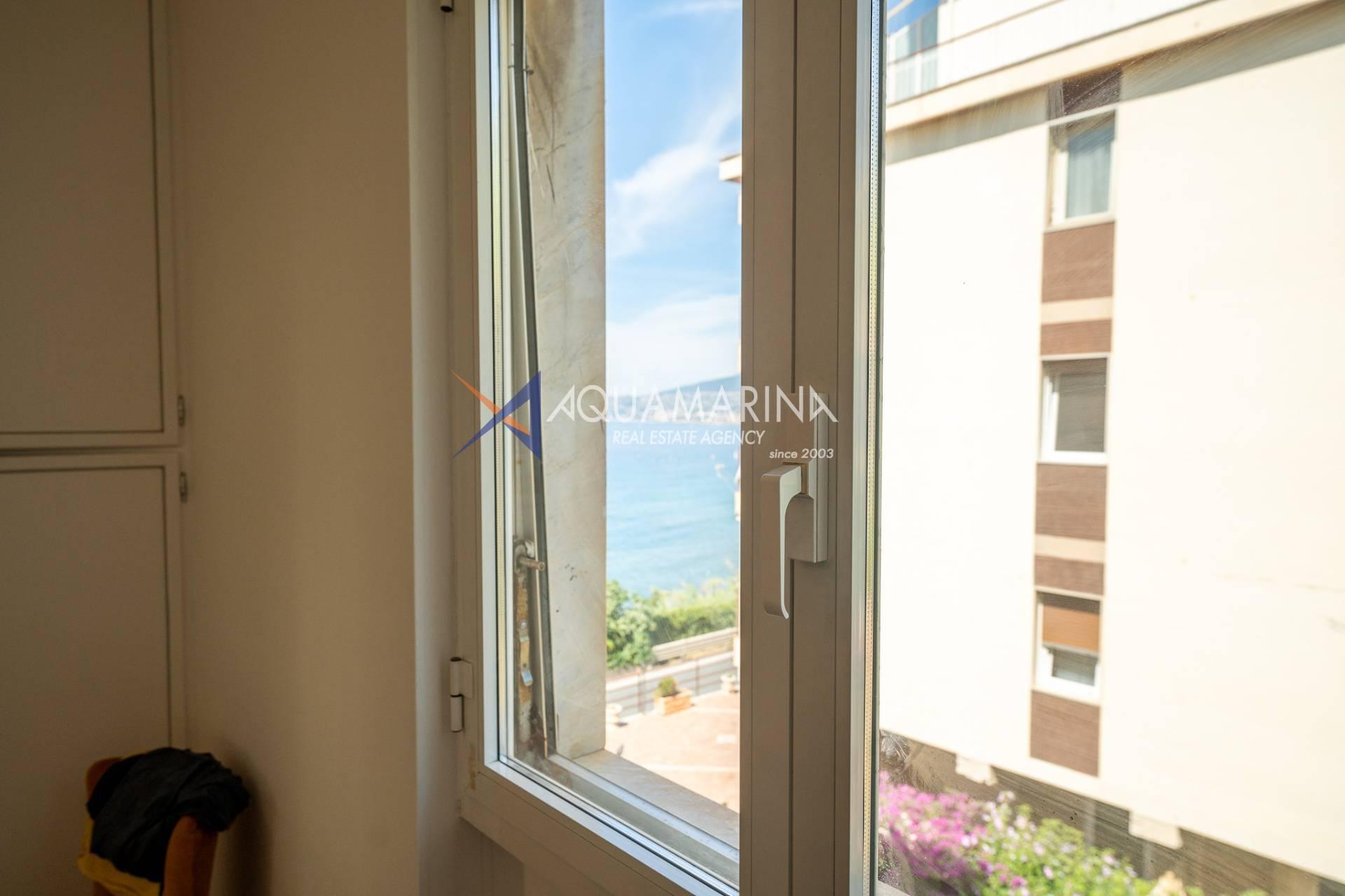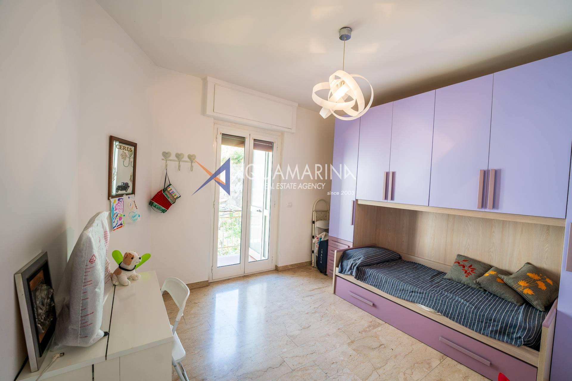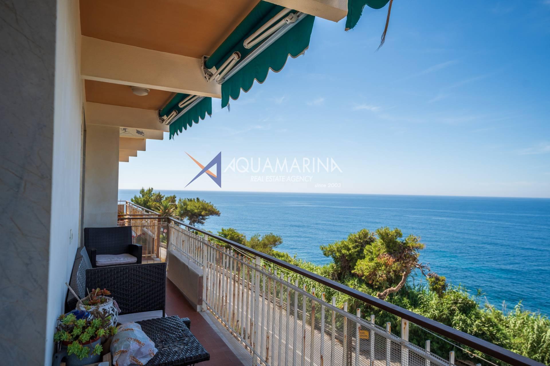 The accommodation, which is in excellent condition, consists of a large living room and an eat-in kitchen with access to a sea-view terrace, three large bedrooms, two bathrooms, and a balcony.