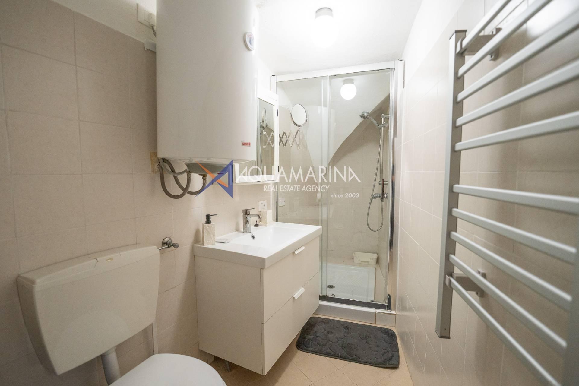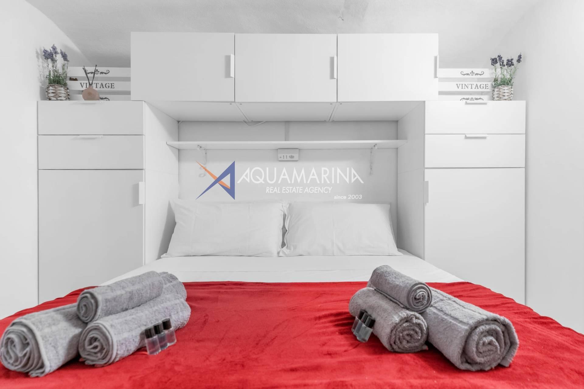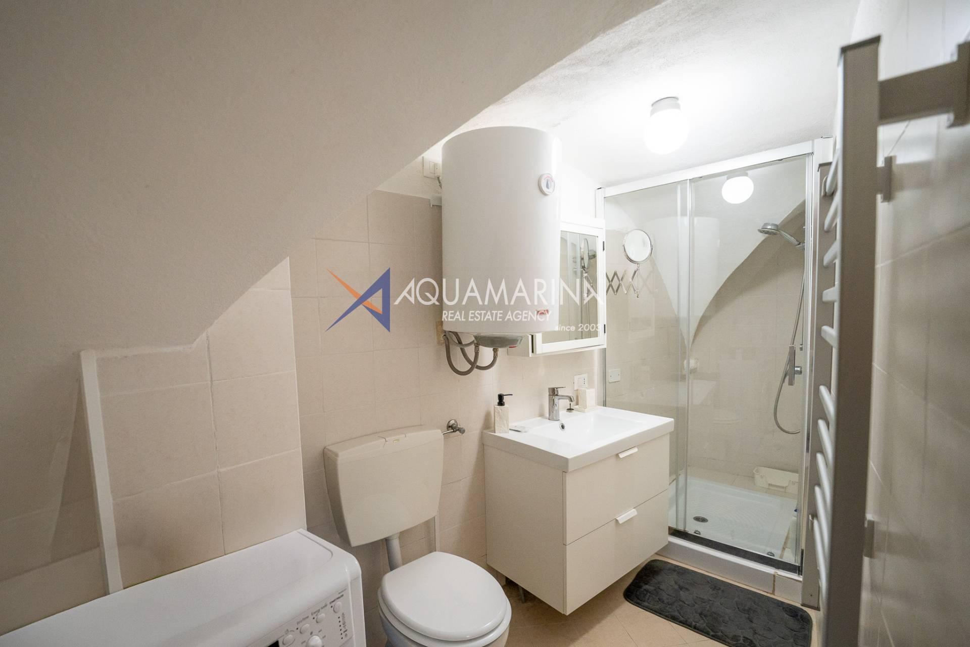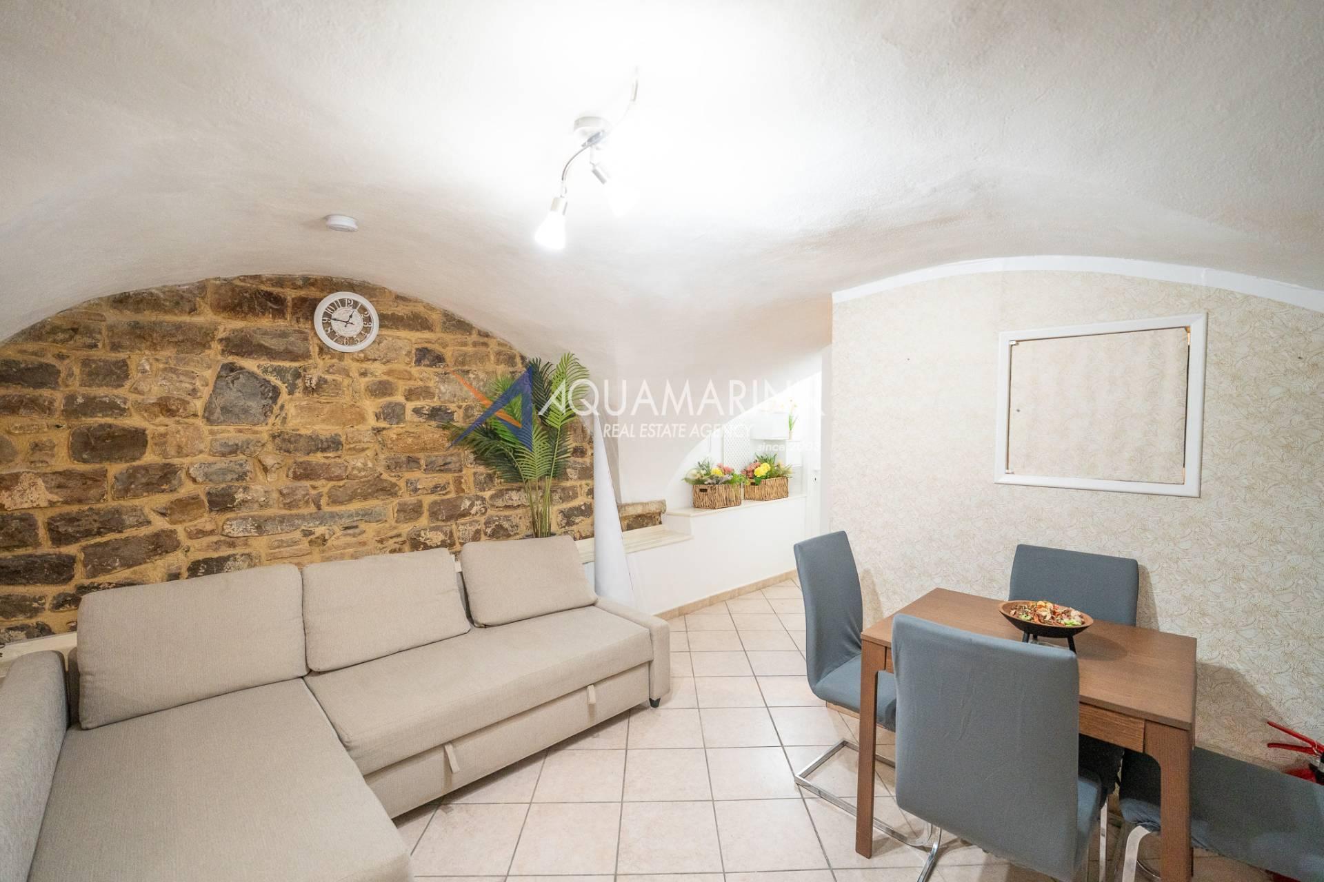 The interiors, thoughtfully designed with great attention to detail, are harmoniously arranged into a bright living area enhanced by exposed stone and a linear kitchen, along with a private and cozy sleeping area. The bathroom, modern and refined, is equipped with a shower box and functional amenities, including a washing machine.