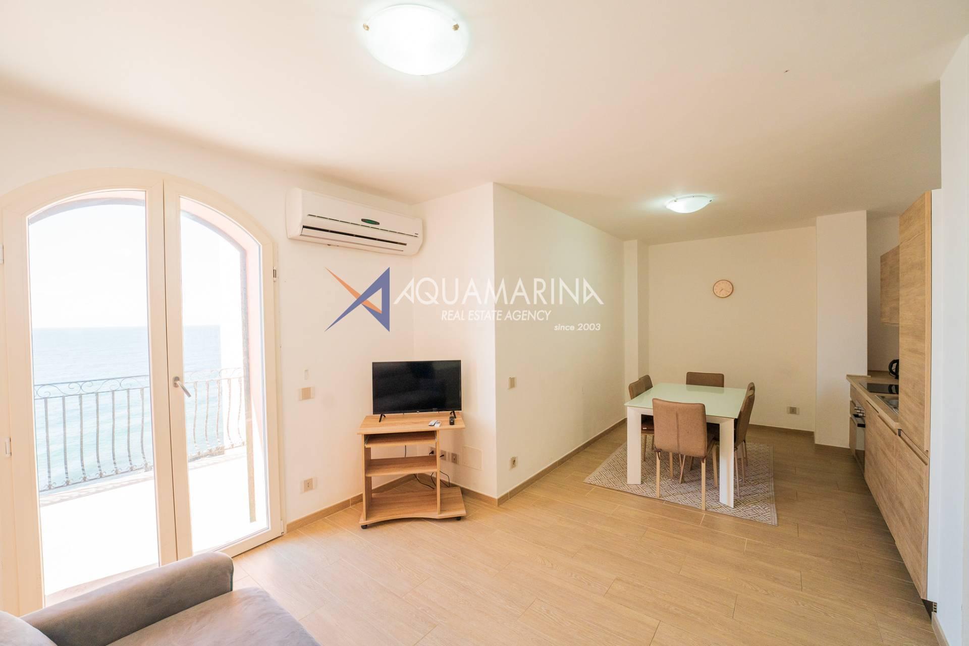 Sanremo, La Brezza area, we offer for sale a three-room apartment on two levels with a magnificent sea view, new, never lived in, tastefully furnished, composed on the first floor of an entrance hall with open kitchen, living room with sea view terrace and bathroom; on the second floor two bedrooms and bathroom.