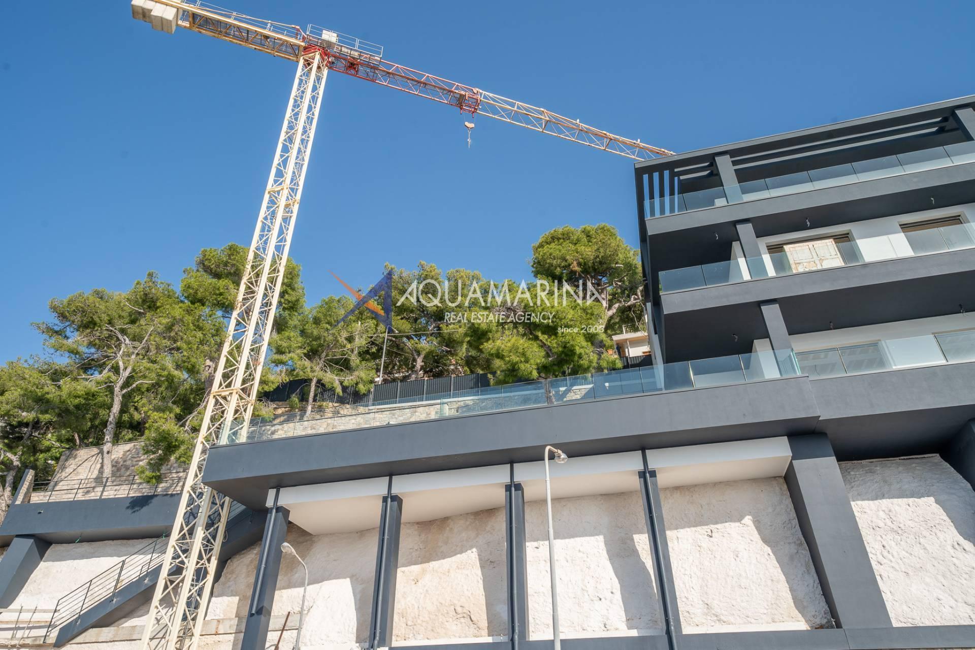 The property, currently in the final stages of renovation, features two entrances from the street level: the main entrance via a shared elevator or staircase, and a secondary entrance through a private external staircase.
