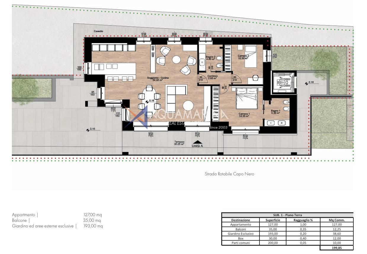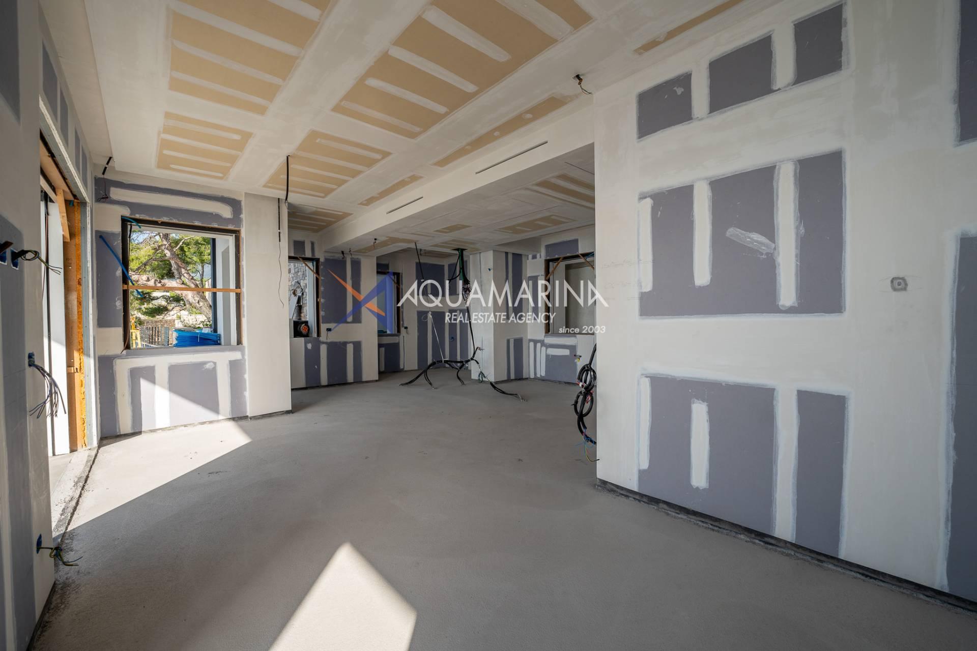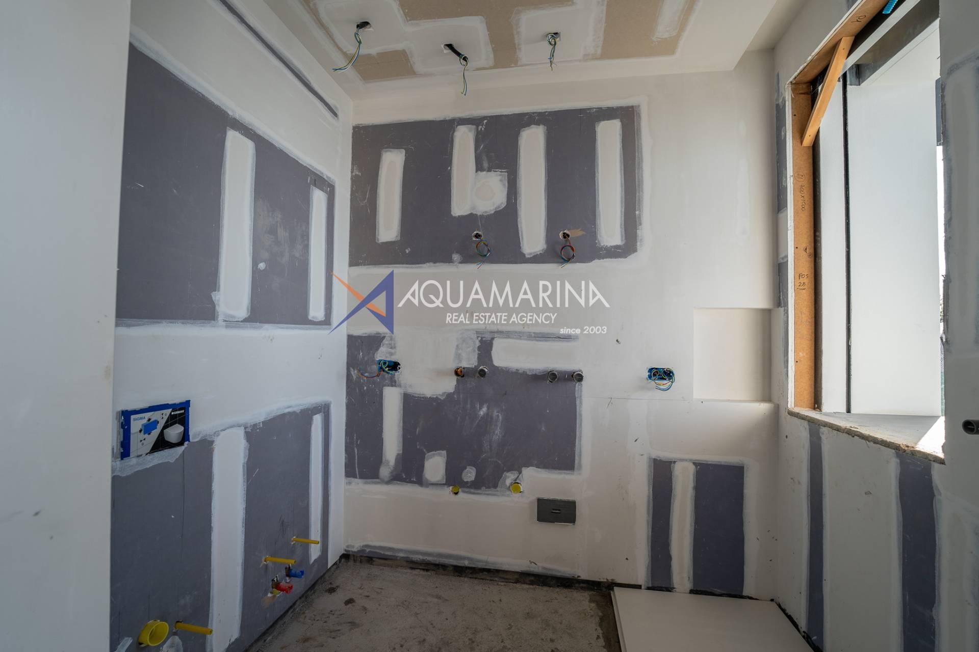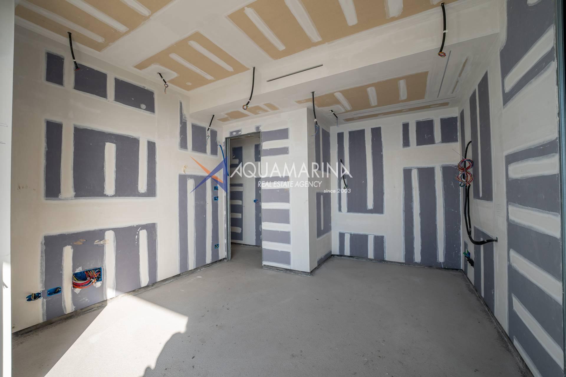 The heating system is autonomous, using underfloor heating powered by a hydronic heat pump. All exterior windows and doors are made of impact-resistant rigid PVC with internal steel reinforcement, featuring the SCHUCO AS 82 system with 7-chamber insulation.