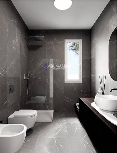 The flooring and wall finishes can be customized by the buyer, with several samples already available on-site for selection.