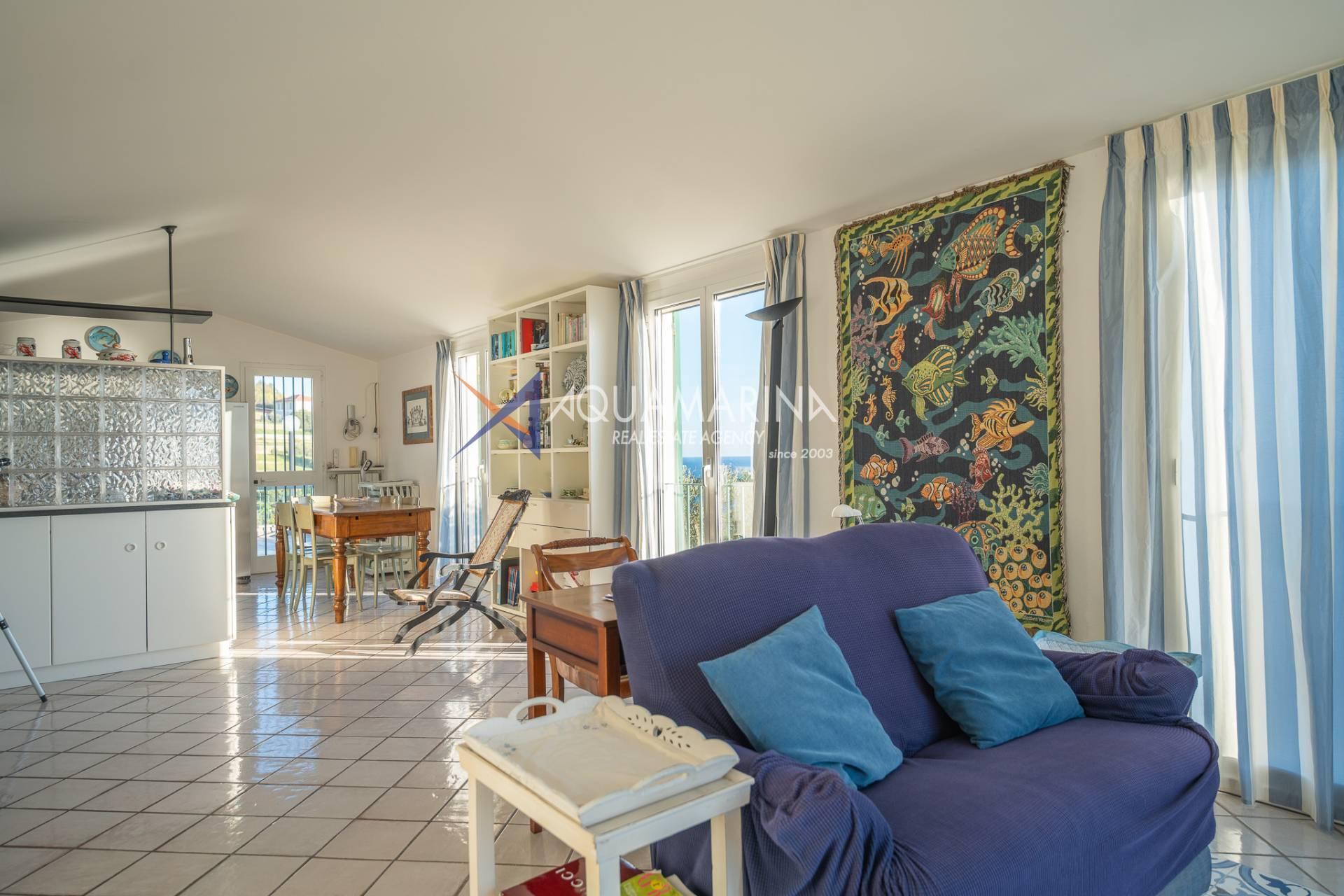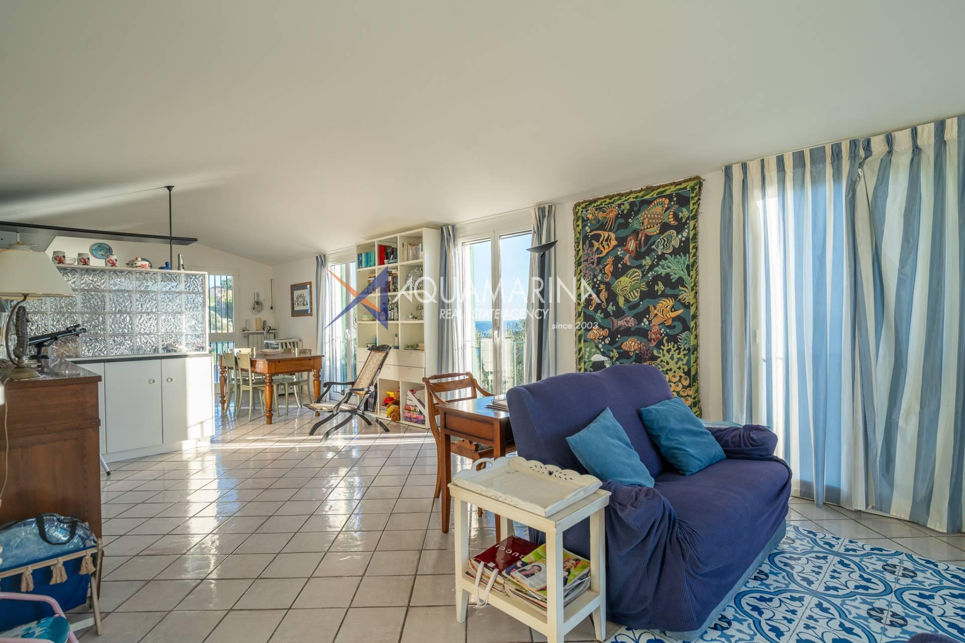 This elegant and spacious villa is spread over two levels, with three independent access points. On the first floor, you'll find a bright living area with a kitchenette, opening onto a large panoramic terrace, perfect for enjoying the sea view in complete privacy. On the ground floor, the sleeping area comprises four double bedrooms and three beautifully finished bathrooms, designed to provide the utmost comfort.