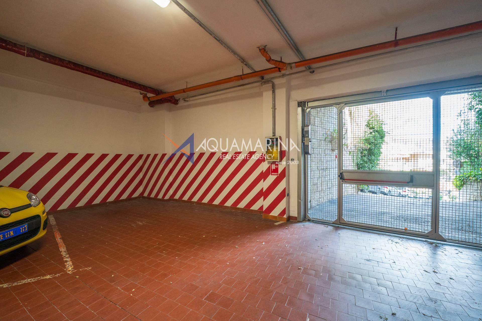 The property includes a covered parking space closed by an electric shutter, a cellar and numerous condominium parking spaces available.