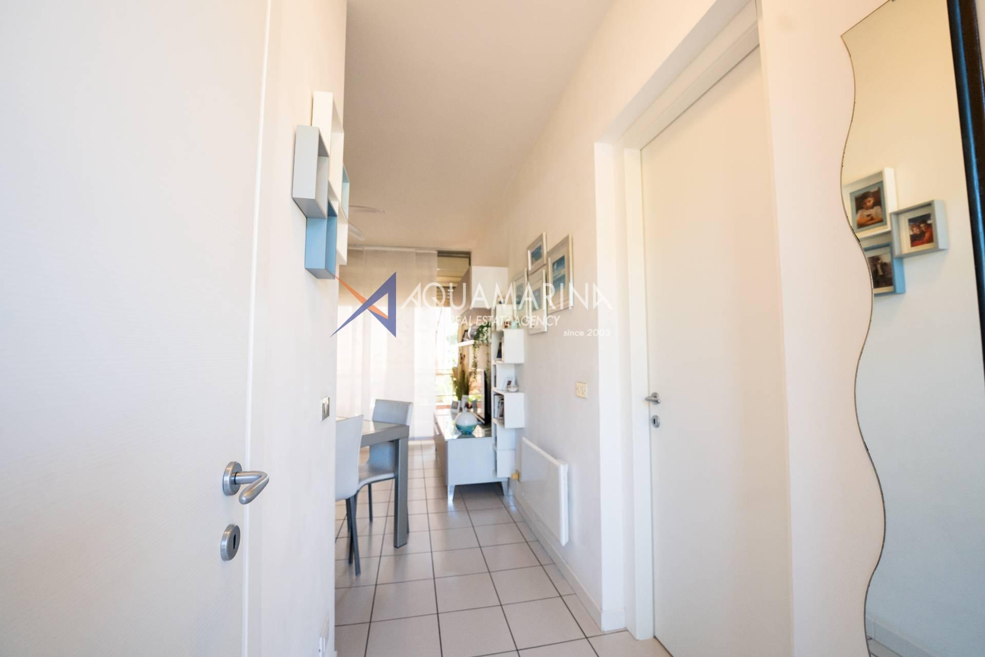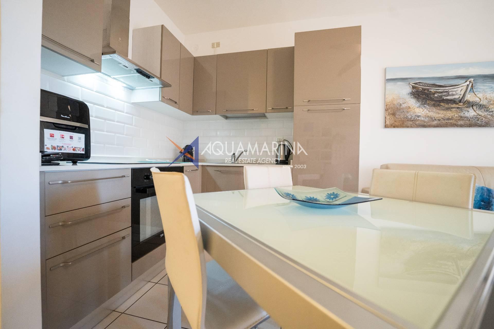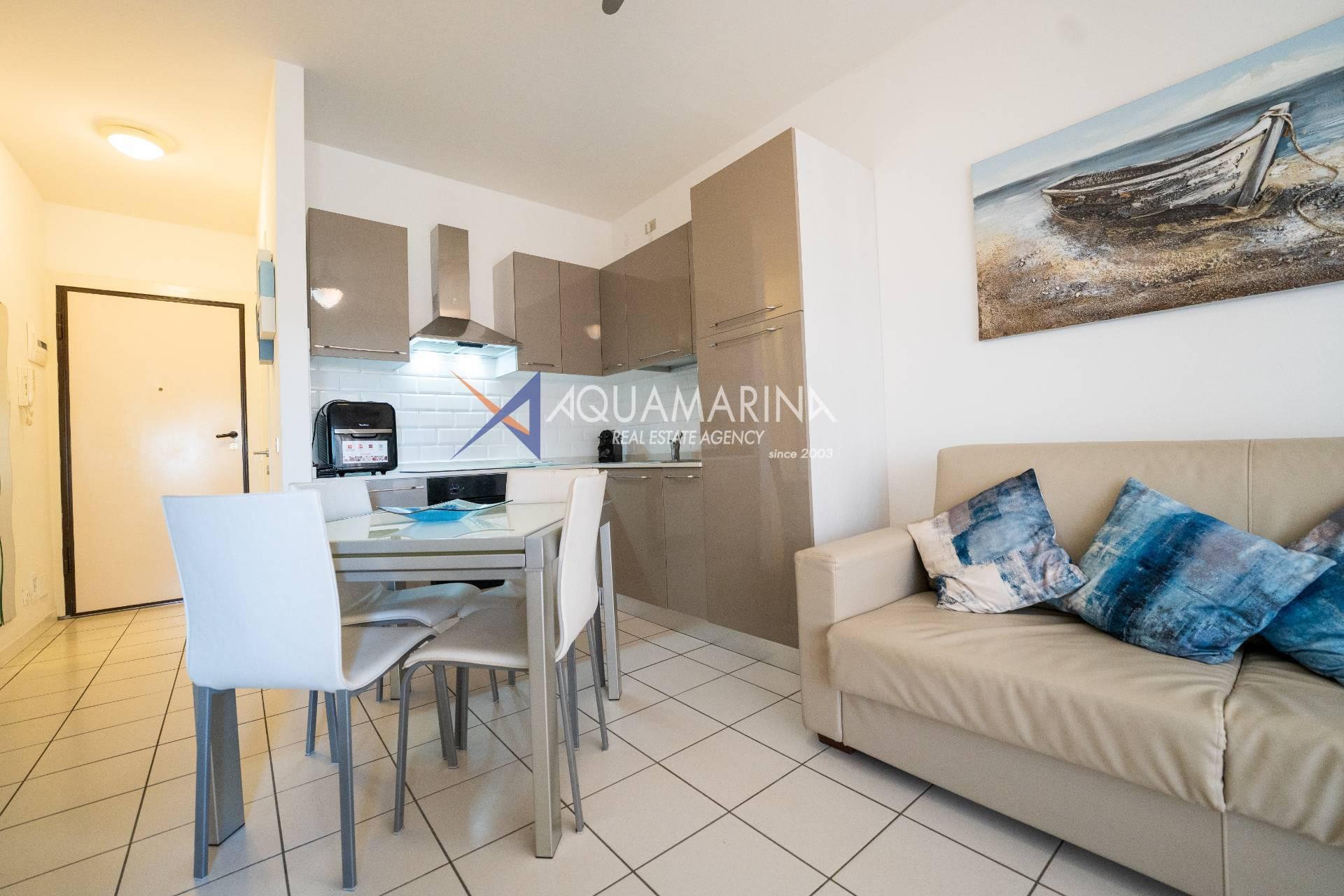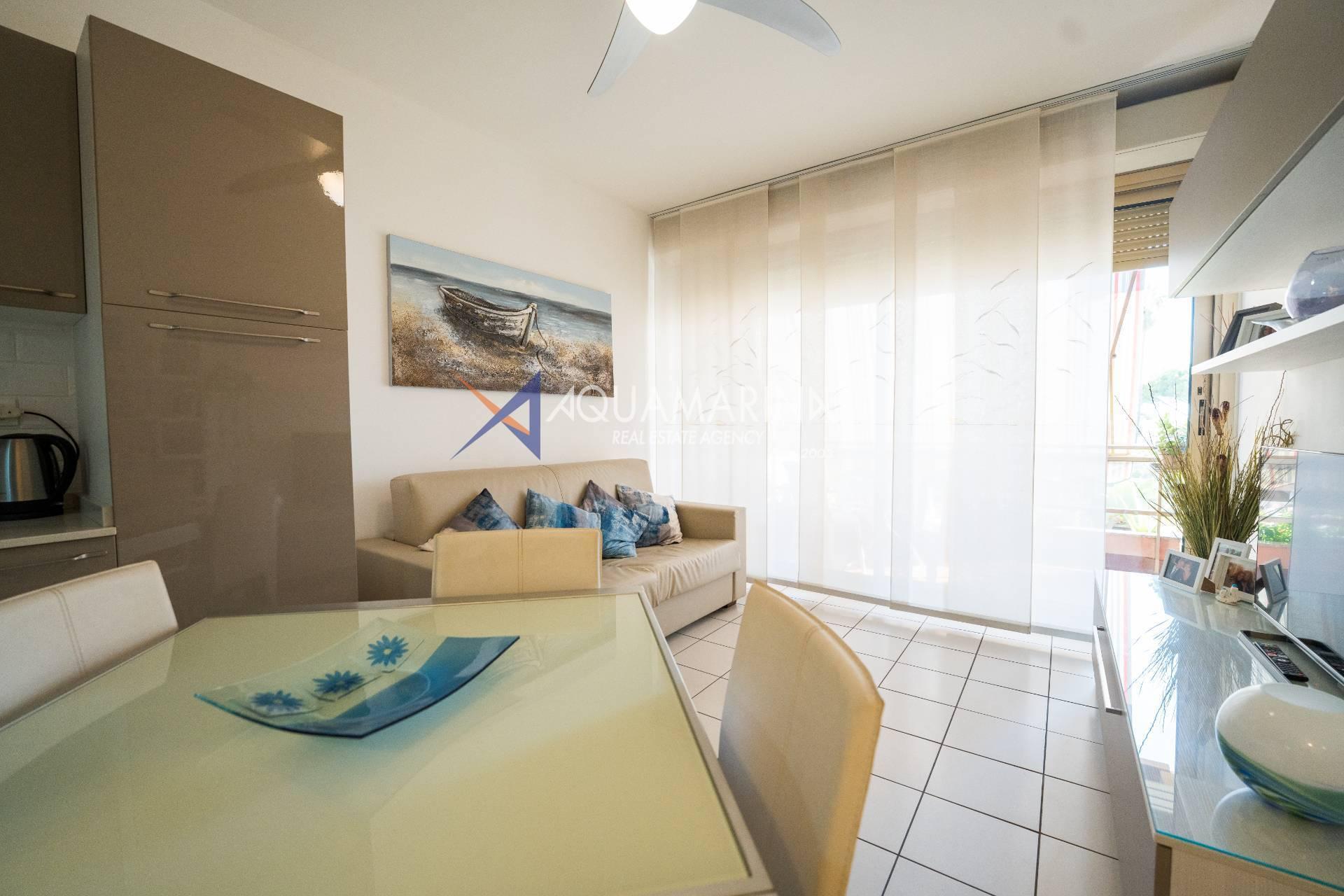 Sanremo sea view apartment, elegant renovated two-room apartment within the prestigious Baia Sole residential complex featuring all modern conveniences, concierge, large communal garden, private swimming pool, Wi-Fi, a ten-minute walk to the sea, and shared parking. We offer for sale a modern, furnished apartment located on the first floor with elevator. This property is ideal for multiple uses: investment, primary residence, or vacation rental. The apartment comprises an entrance hall leading to the spacious living room with open kitchen, a large bedroom, a bathroom, and a spacious terrace for relaxing. The property includes a garage with two entrances. The property is being sold furnished and ready to move into. Independent access is also available from Via Privata al Sole, making it easy to reach the sea on foot. Numerous shared parking spaces ensure easy parking. The prime location makes this property a great choice for those seeking a quiet and exclusive location. Don't miss this opportunity in one of the most beautiful and sought-after areas of Sanremo.