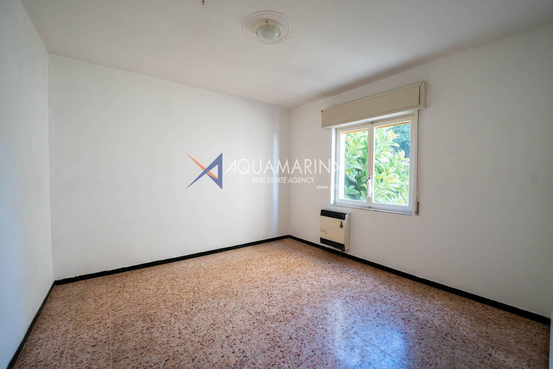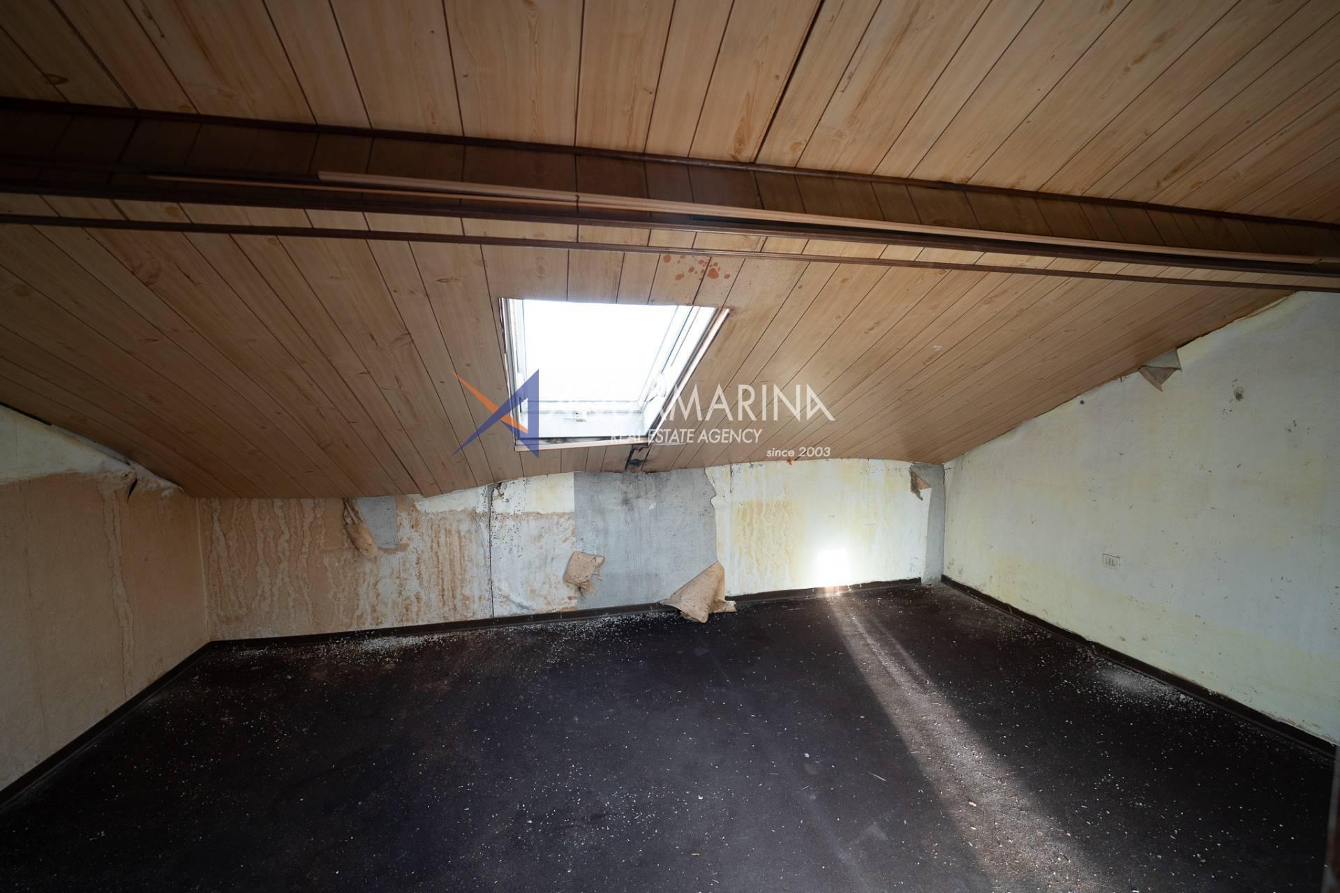 The property, in its original state, consists of an entrance hall, living room, eat-in kitchen, three bedrooms, two bathrooms and a small terrace. The property is completed by a spacious attic and the possibility of reorganising the interior to create two separate units, making it ideal as an investment.