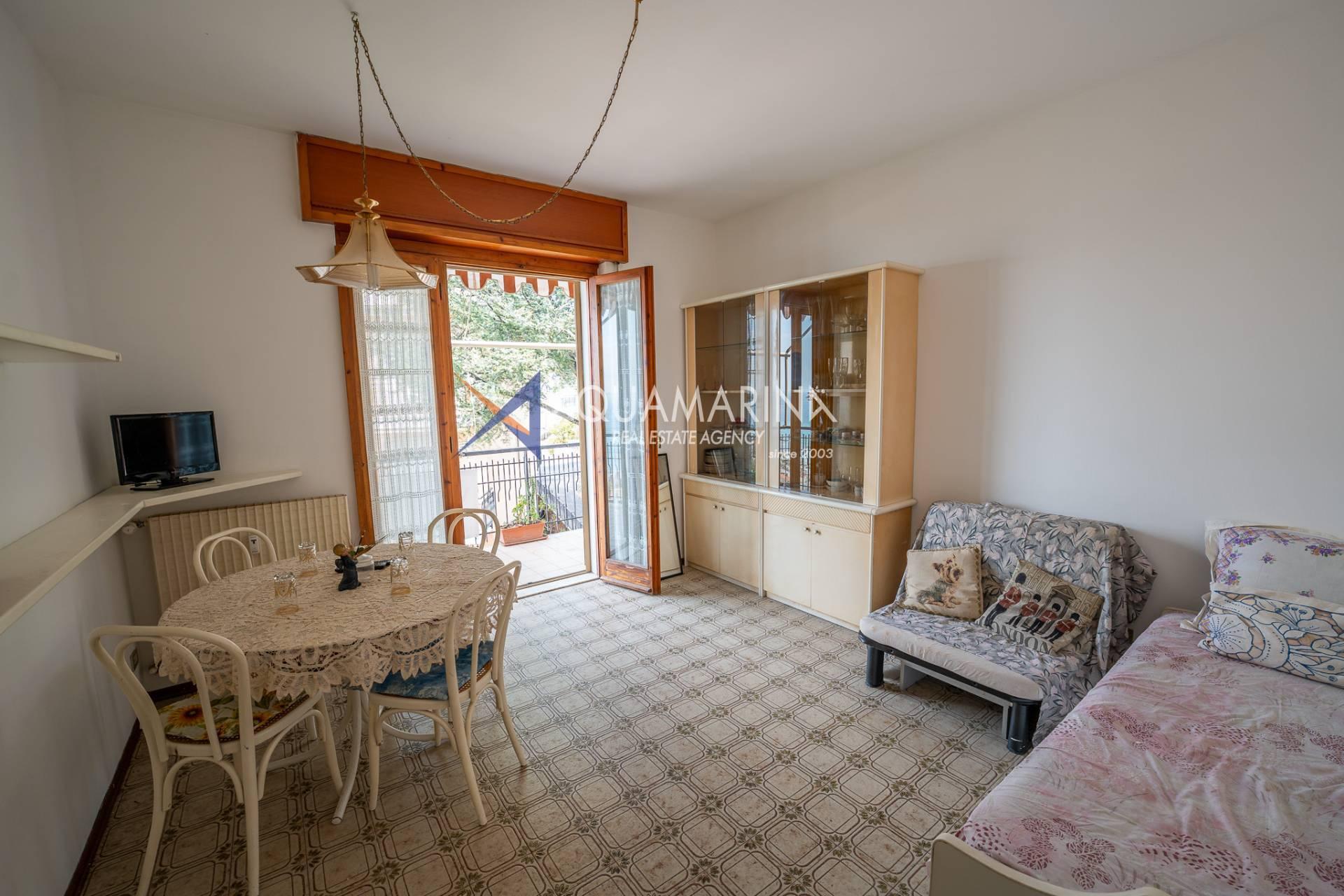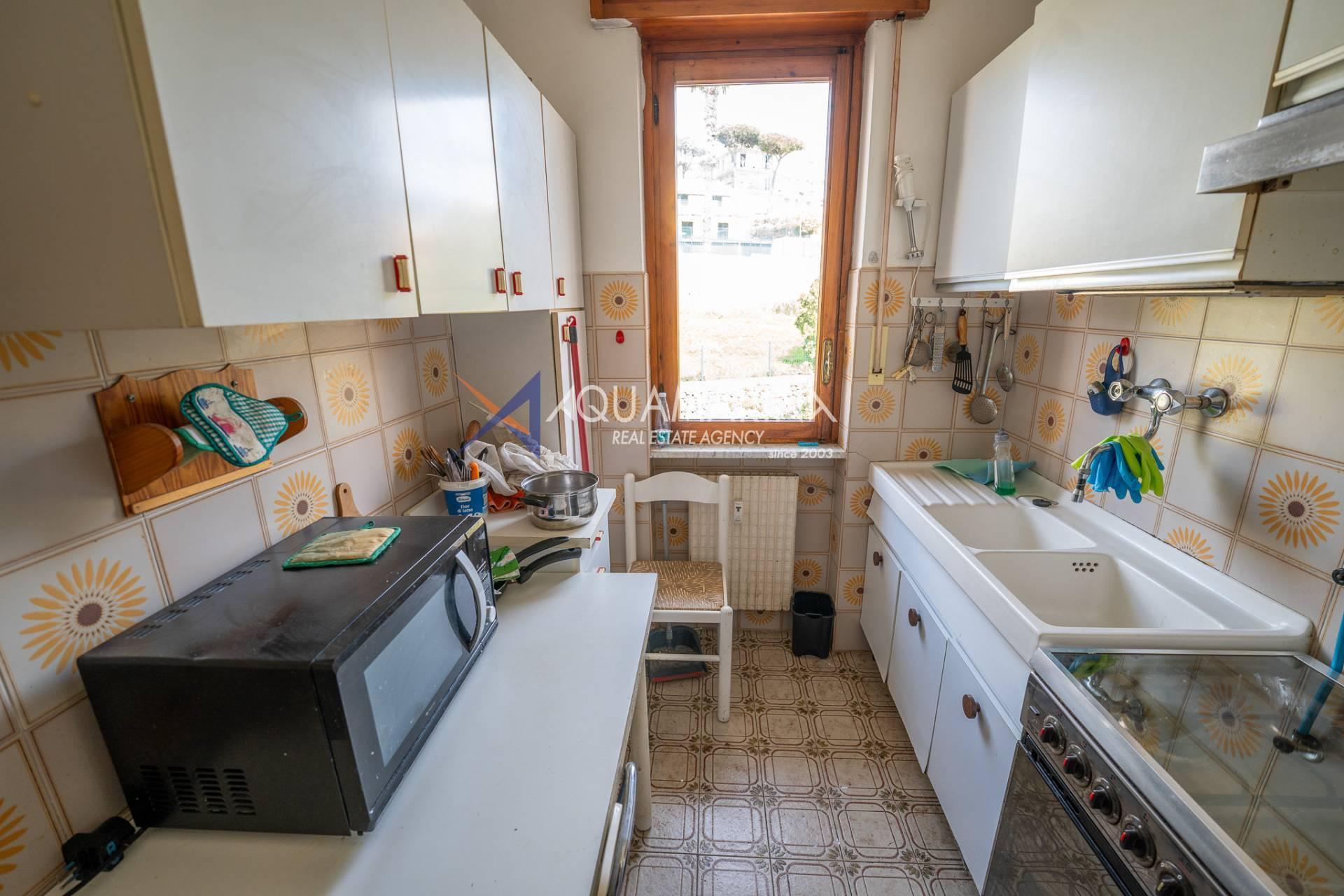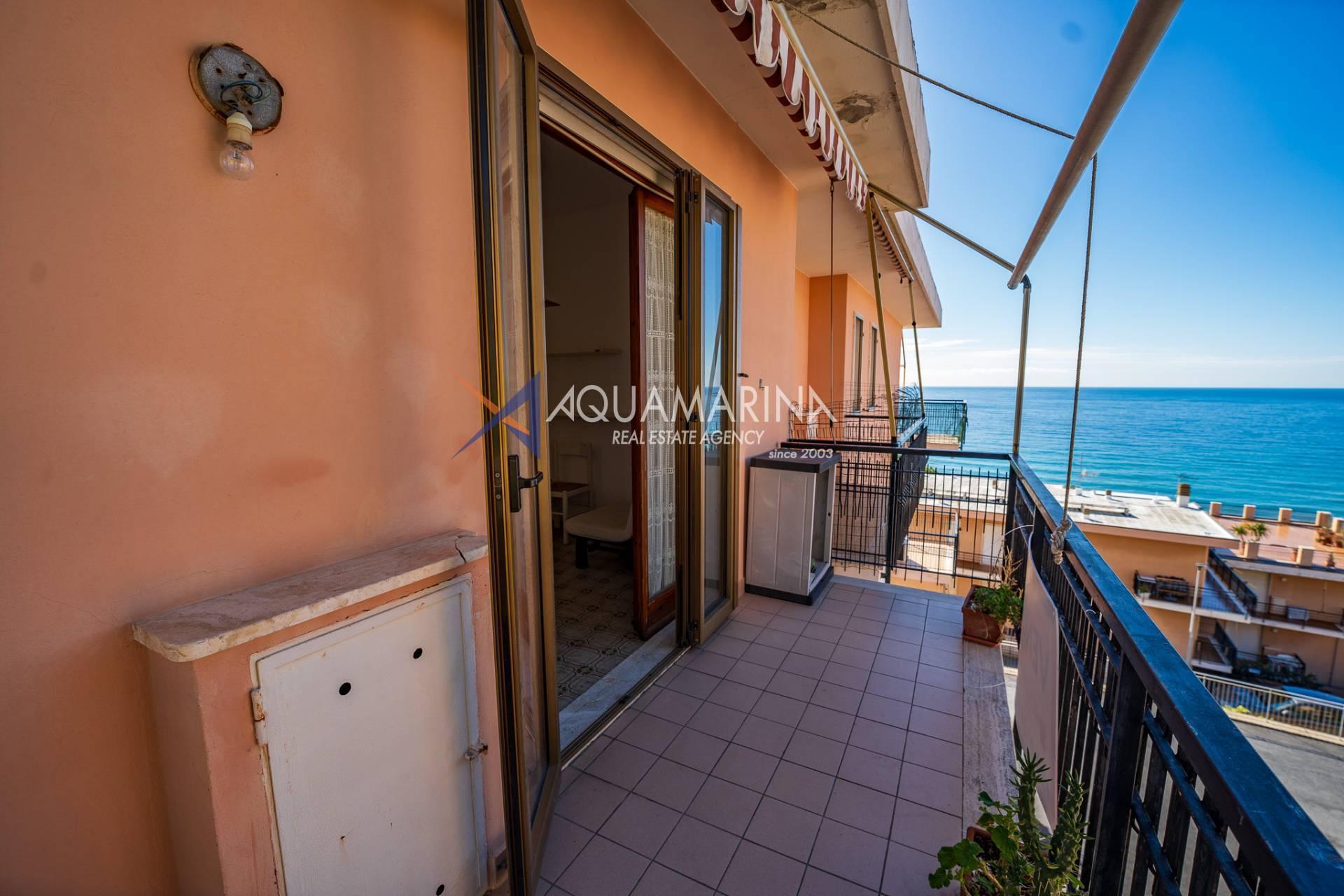 In the beautiful and renowned Santo Stefano al Mare, just steps from the beaches and the cycle/pedestrian path, we offer for sale a spacious studio apartment on the third and top floor (with elevator). The apartment comprises an entrance hall leading to a spacious hallway, currently featuring a built-in sofa and a full-length wardrobe, ideal for use as a multipurpose area. Next comes the generously sized living area, which leads to a wonderful, habitable balcony offering a heavenly view of the sea and the town.