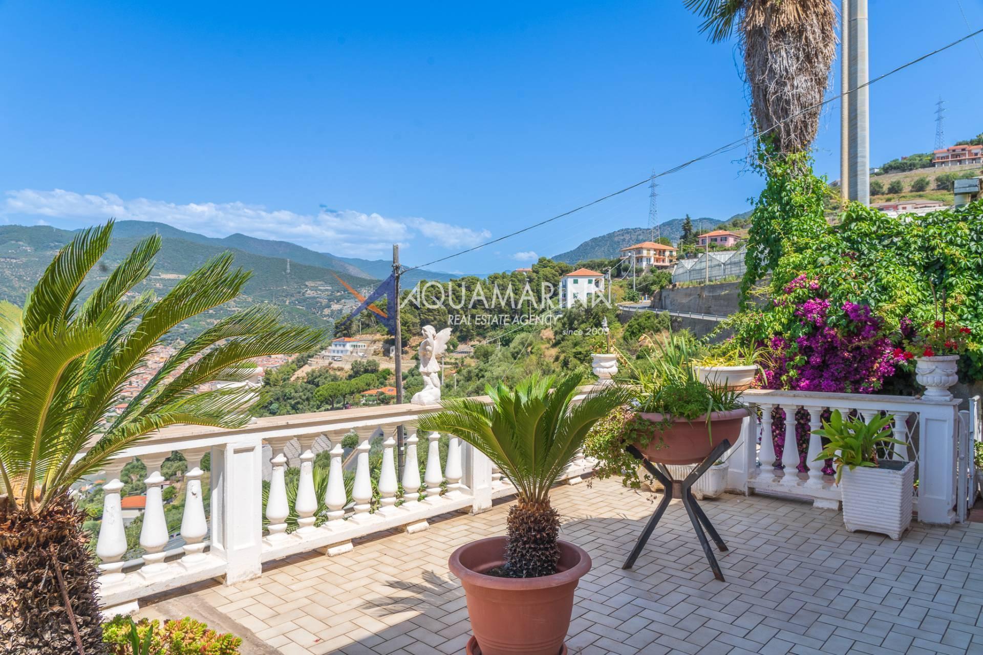 The apartment features a large terrace with a fantastic view of the valley and a glimpse of the sea.