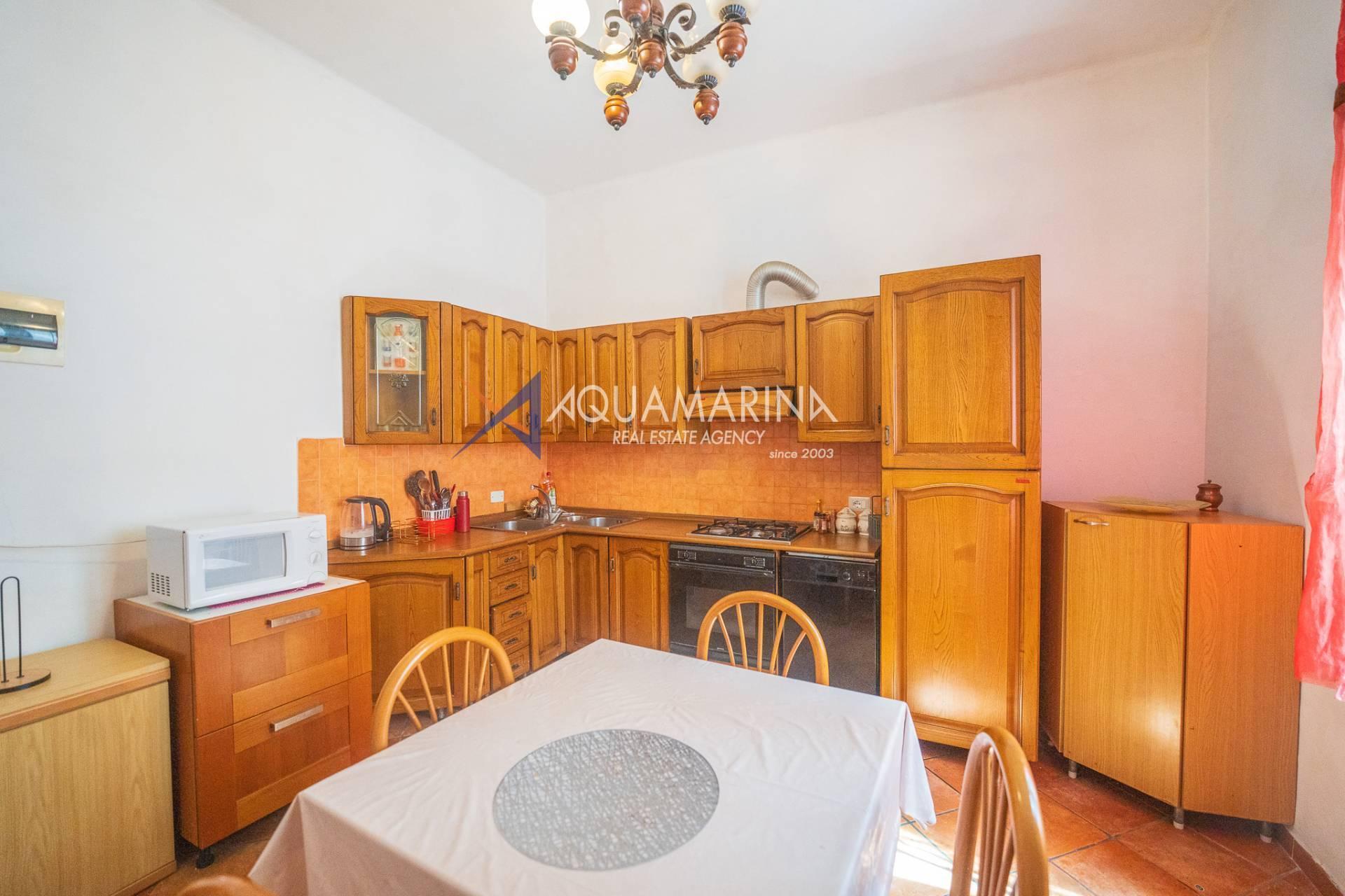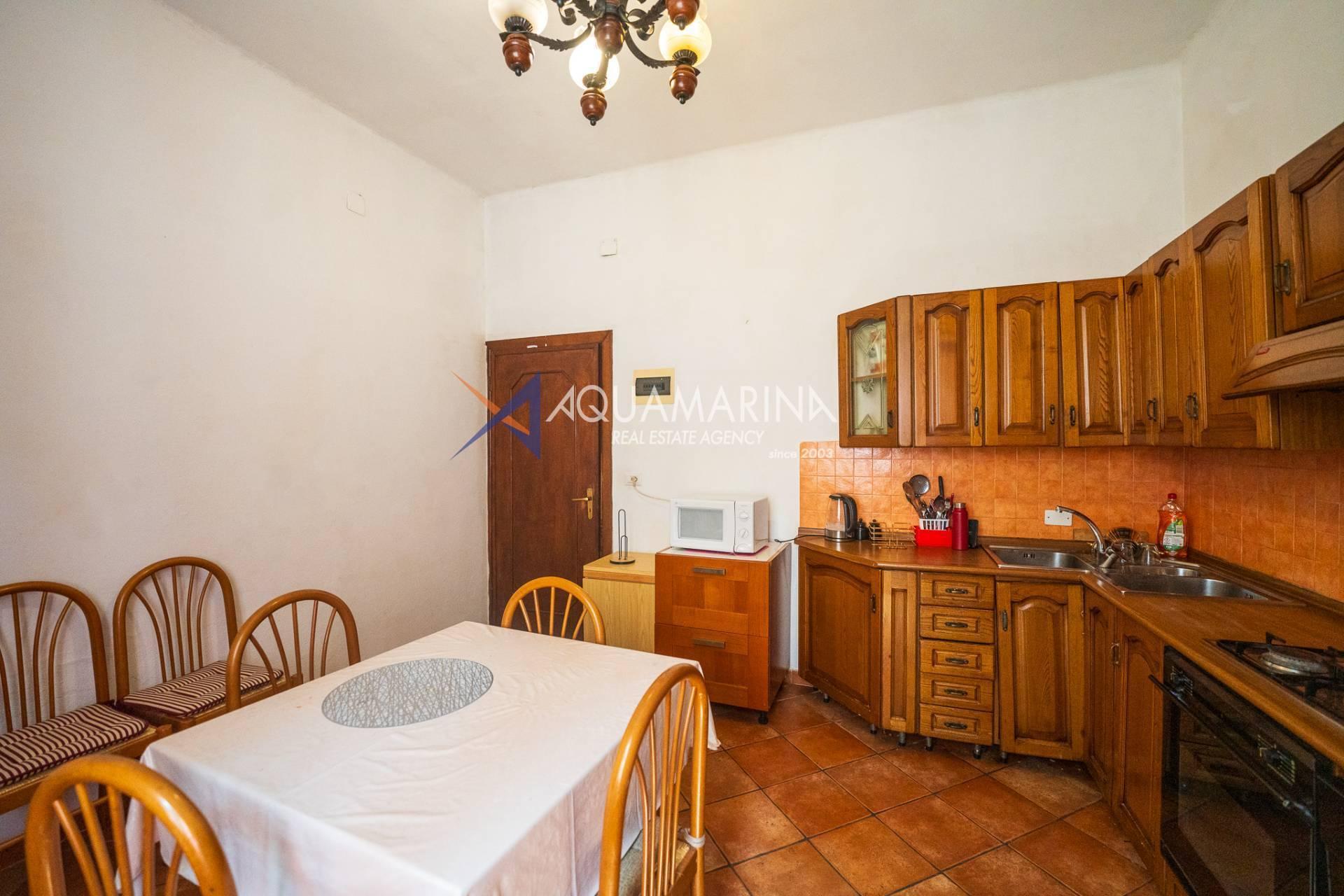 The property is located within an independent house consisting of three apartments and is divided as follows: entrance into the living room, a separate kitchen, two double bedrooms, and a large bathroom.