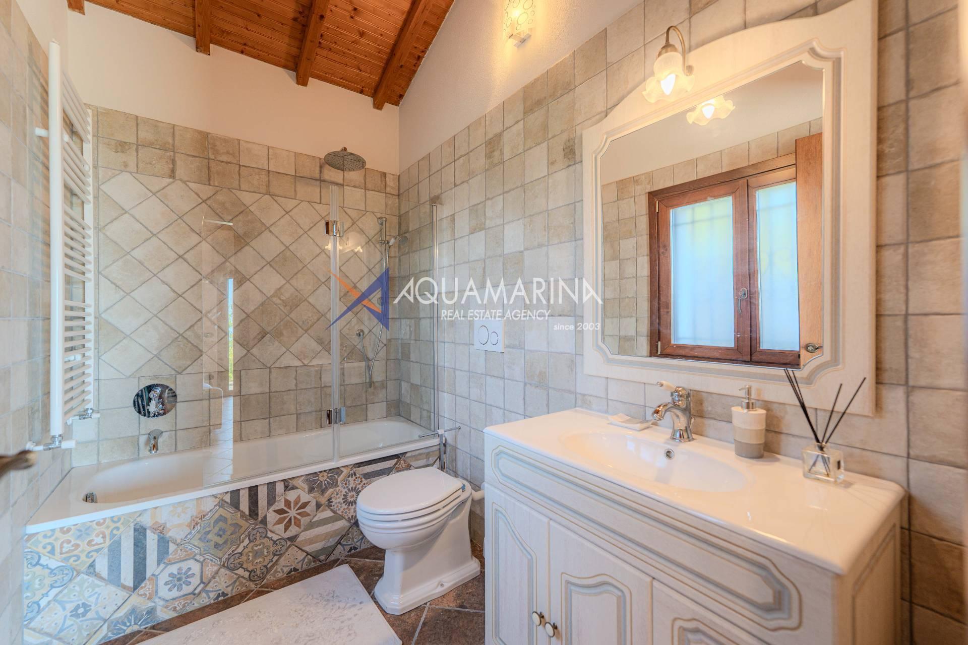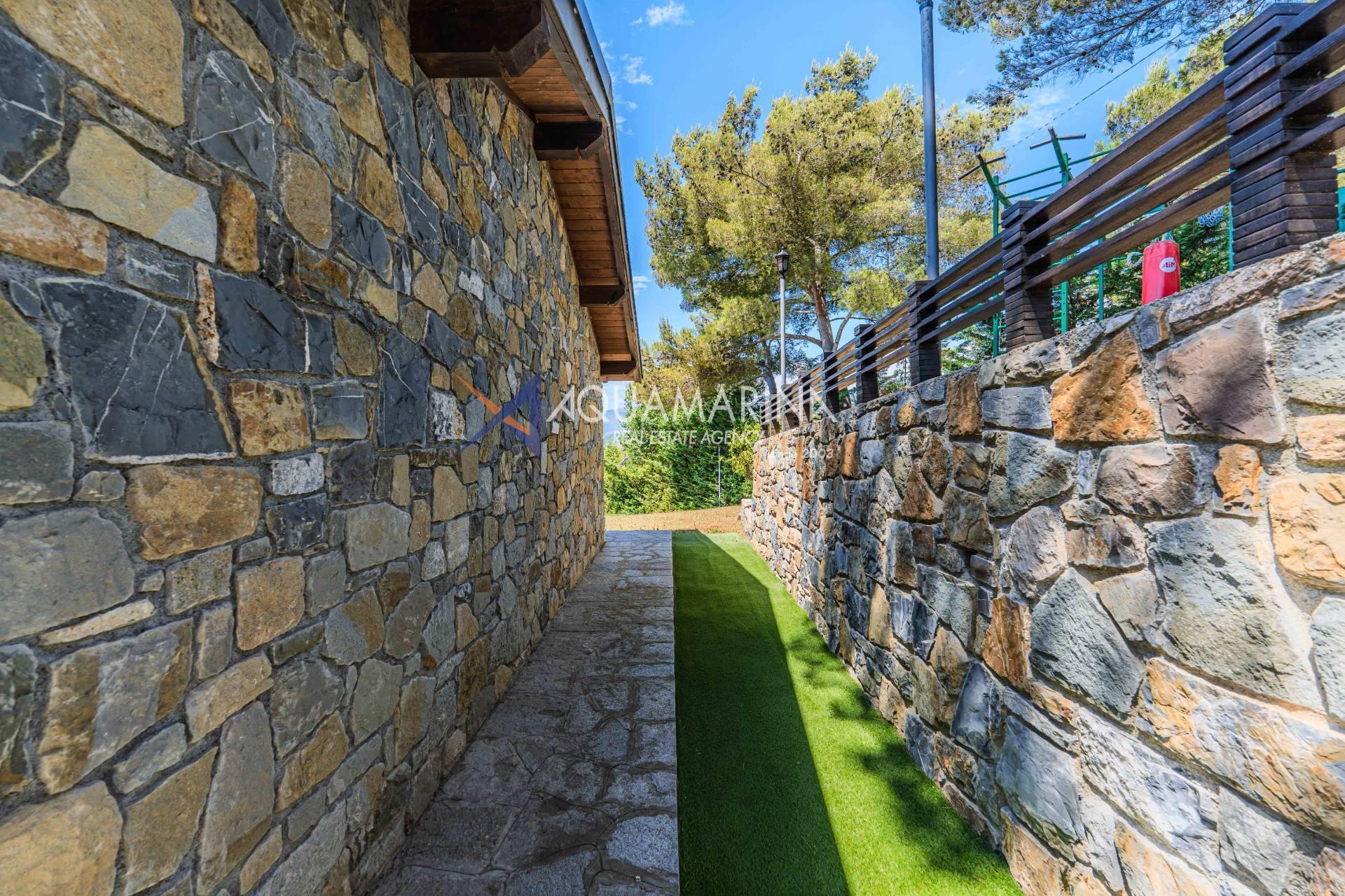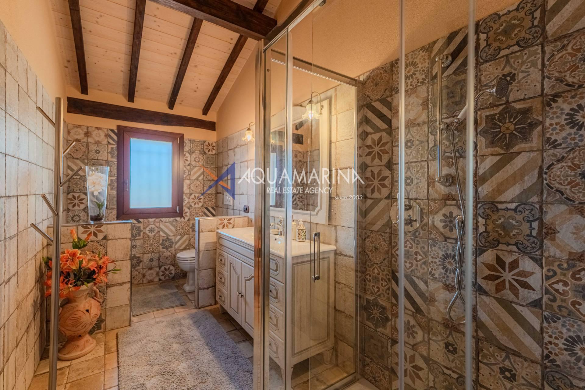 The plot of approximately 2 900 m² features fruit trees and an olive grove with an automatic irrigation system.