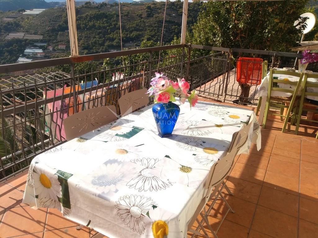 Vallecrosia, in the splendid setting of the Conca Verde area, we offer for sale a large detached house, an ideal solution for two families. The property is currently divided as follows: on the first floor apartment comprises: entrance hall, large living room with balcony, from which you can enjoy a unique view up to the Côte d'Azur, kitchen, three bedrooms, utility room, bathroom. On the ground floor there are two other independent apartments; a two-room apartment composed of living room, kitchen, bedroom and bathroom. And another apartment, composed of: entrance, living room with open kitchen, three bedrooms, bathroom, storage room, large living terrace with wonderful panoramic view. The large property continues with a warehouse, two cellars, a greenhouse used as a storage and parking area, summer kitchen area with oven and bbq, and a large square where numerous cars can be placed. Surrounding land of about 5,500 square meters, possibility of swimming pool.