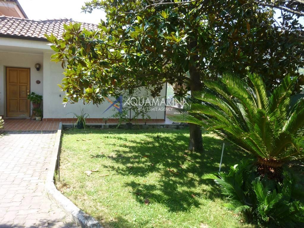 Vallecrosia, on the first hill, 3.5km from the town center and the sea, we offer for sale a large sea view apartment in a semi-detached villa.