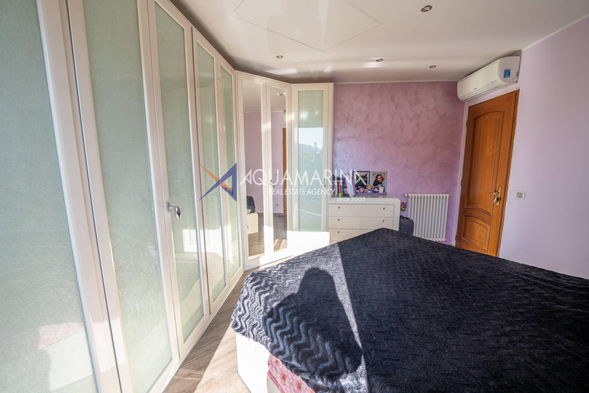 The property, spread over two levels and in excellent condition, is composed as follows: entrance on the ground floor into a spacious living room with an open-plan kitchen, one bedroom, a windowed bathroom, and an internal staircase leading to the upper floor. On this level, there are two bedrooms, a bathroom, a storage room, a balcony, a covered porch, and a loggia terrace.
