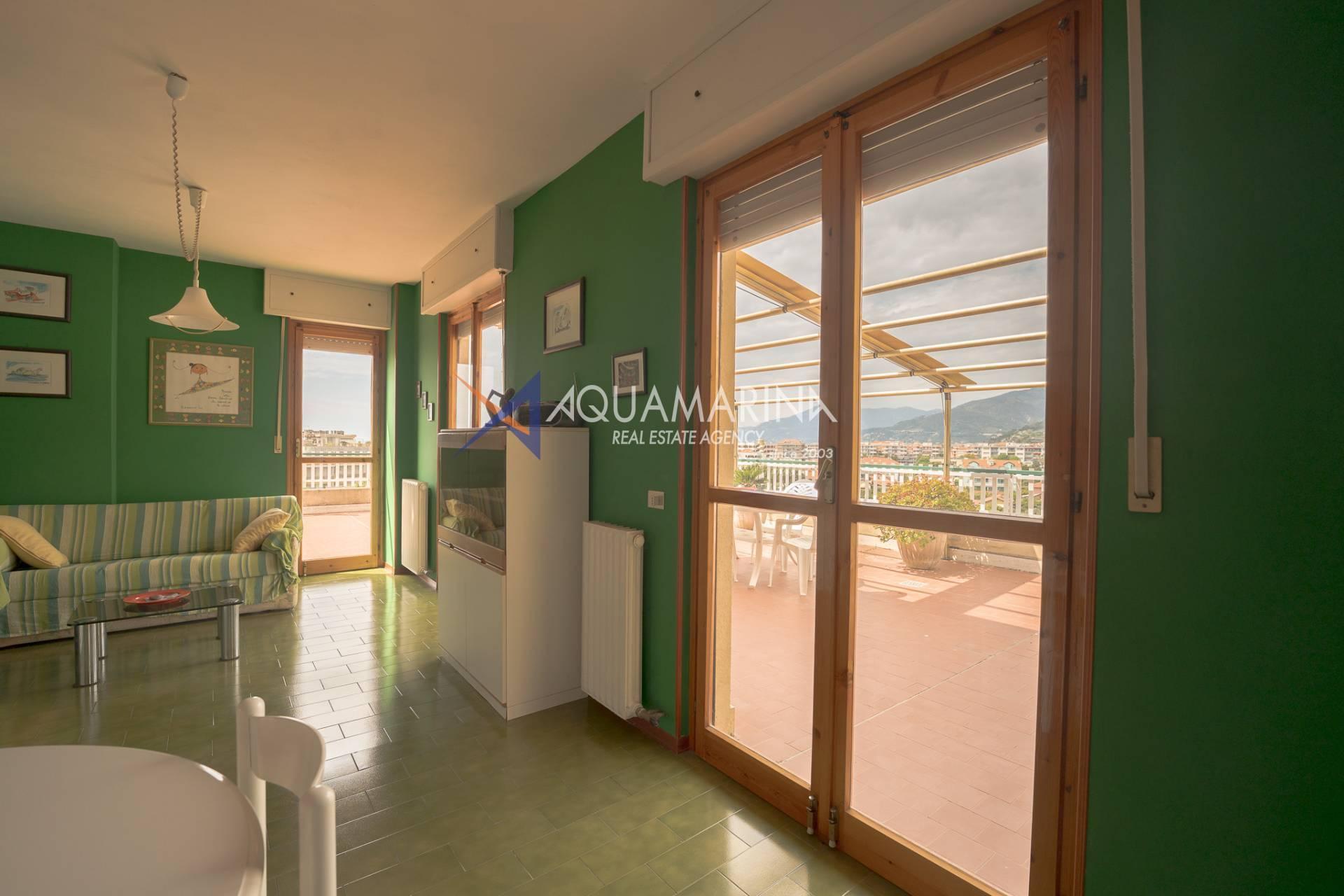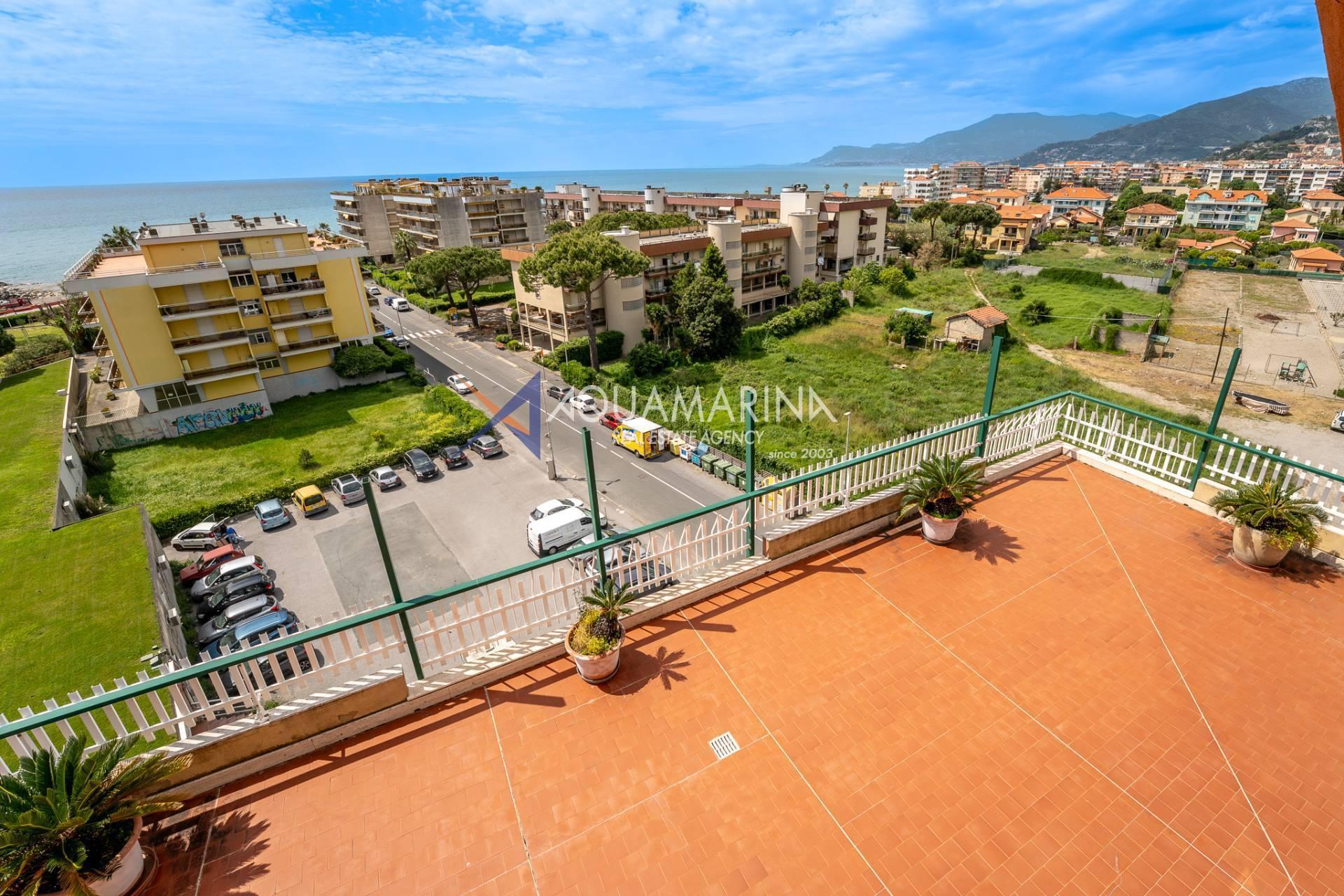 Ventimiglia, we offer for sale a wonderful penthouse with a large terrace of about 100 square meters that offers an enchanting sea view, a few steps from the beaches, the promenade and the cycle path.