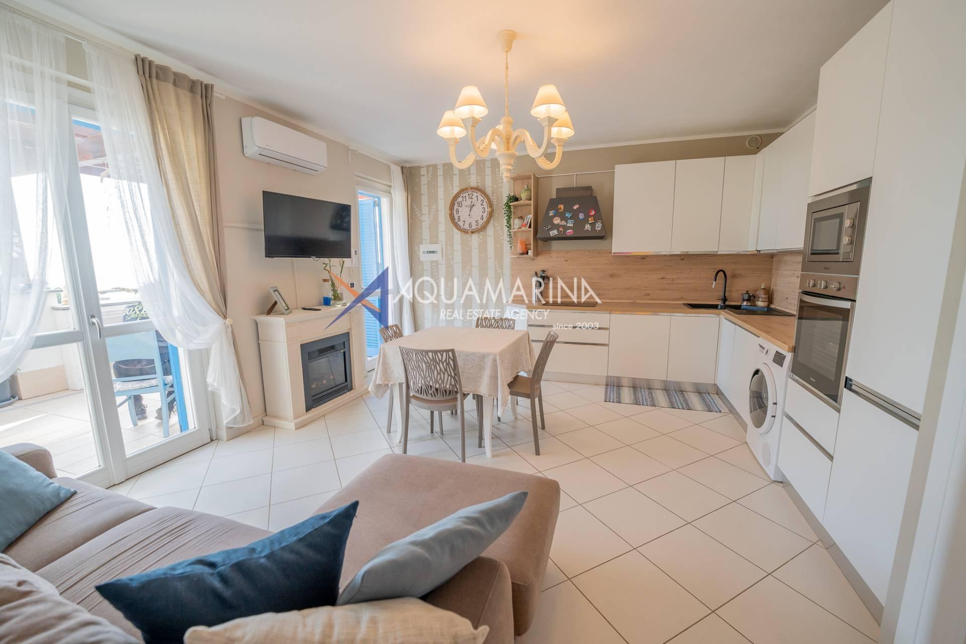 In an elegant recently built context, we offer a three-room apartment on the first and last floor consisting of a living room with kitchenette, hallway, two bedrooms and bathroom.