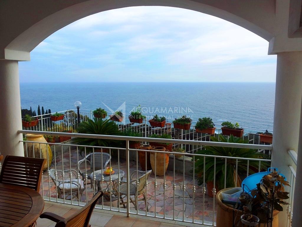 Ventimiglia, La Mortola area, we offer for sale a luxurious villa with splendid sea view spread over three floors, consisting of a large master bedroom with private bathroom, large panoramic terrace, spacious living room with open kitchen, three bedrooms, and two bathrooms.